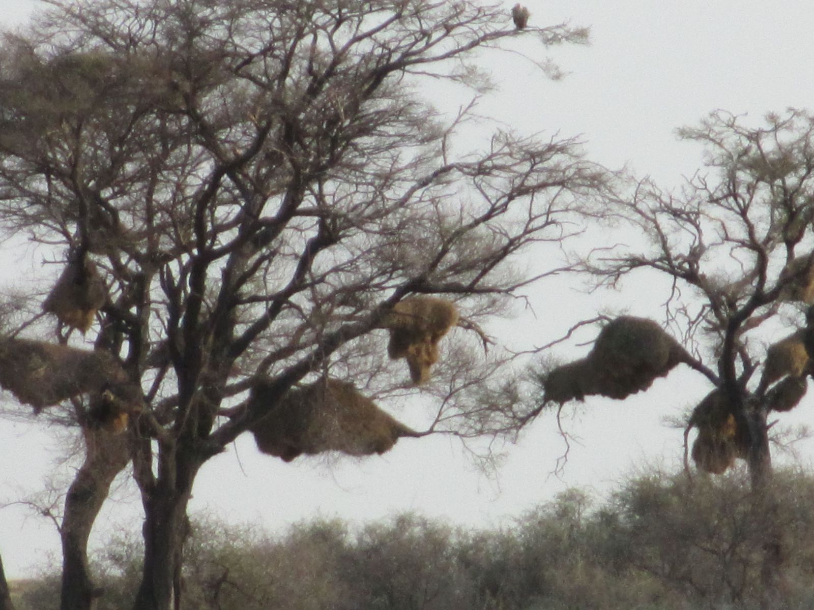 The highlight of the trip for many, because it is uncommon, was the sighting of a number of lions, including at one point a whole pride consisting of male lion, three females and their cubs strolling about in the early light making their way back to shelter to get out of the heat of the midday sun.